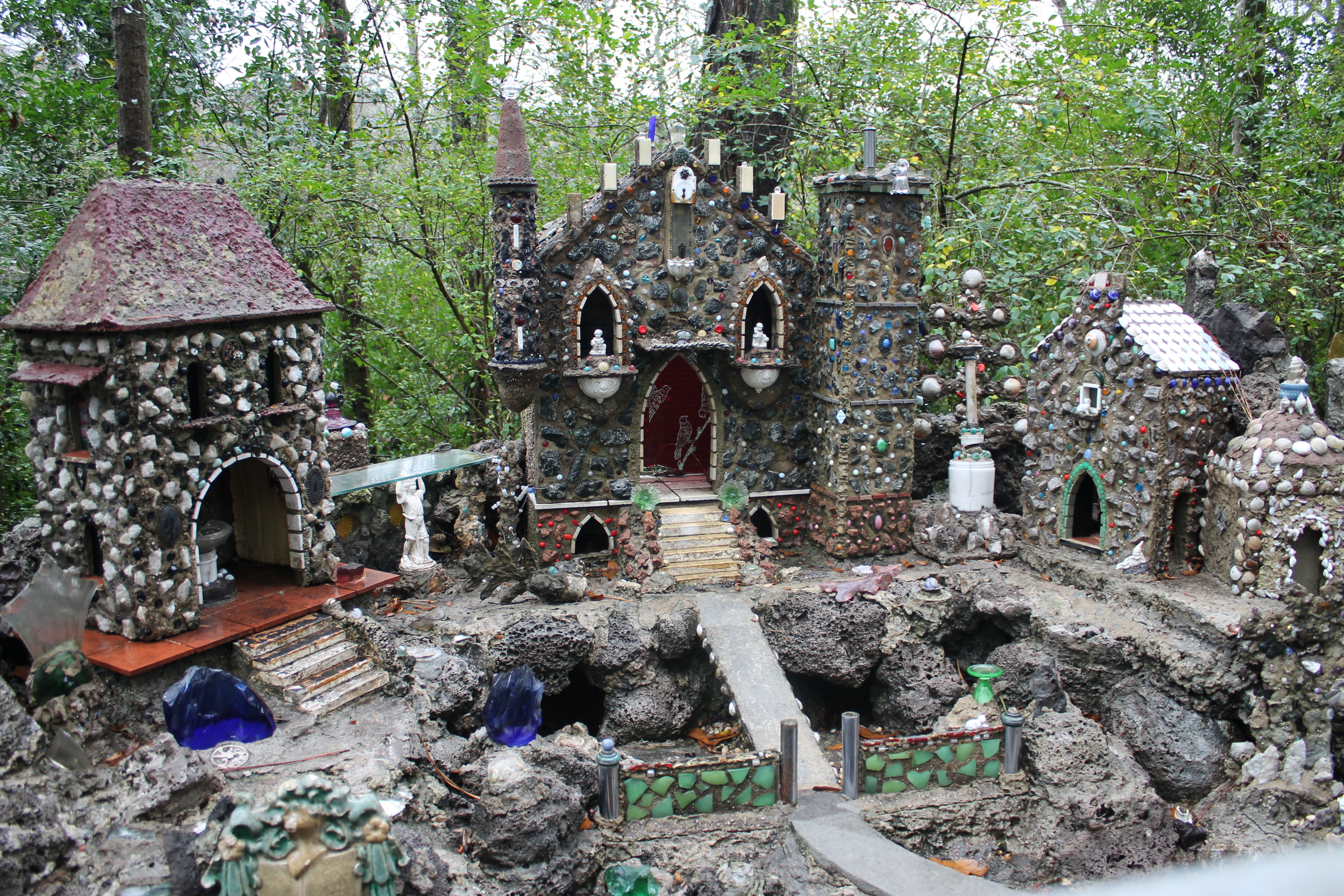 I have this love hate relationship with road trips.  I love all the planning that is involved in the weeks and months leading up to a road trip.  I love visiting places.  I dread the endless hours in the car.  We routinely make the 1,100 mile trip to visit my family and friends in Louisiana.  In order to break up the monotony of that long drive, we try to stop for a break at some point during the trip.  In December, we decided to check out the Ave Maria Grotto in Cullman, Alabama.  The grotto is located on the grounds of a Benedictine monastery called St. Bernard Abbey.  The grotto was created by Brother Joseph, beginning in the 1930’s.  It’s an amazing place to visit and stretch one’s legs.  It had been raining for the first 8 hours of our drive.  We decided to stop at the grotto and were fortunate enough to catch a break in the weather.